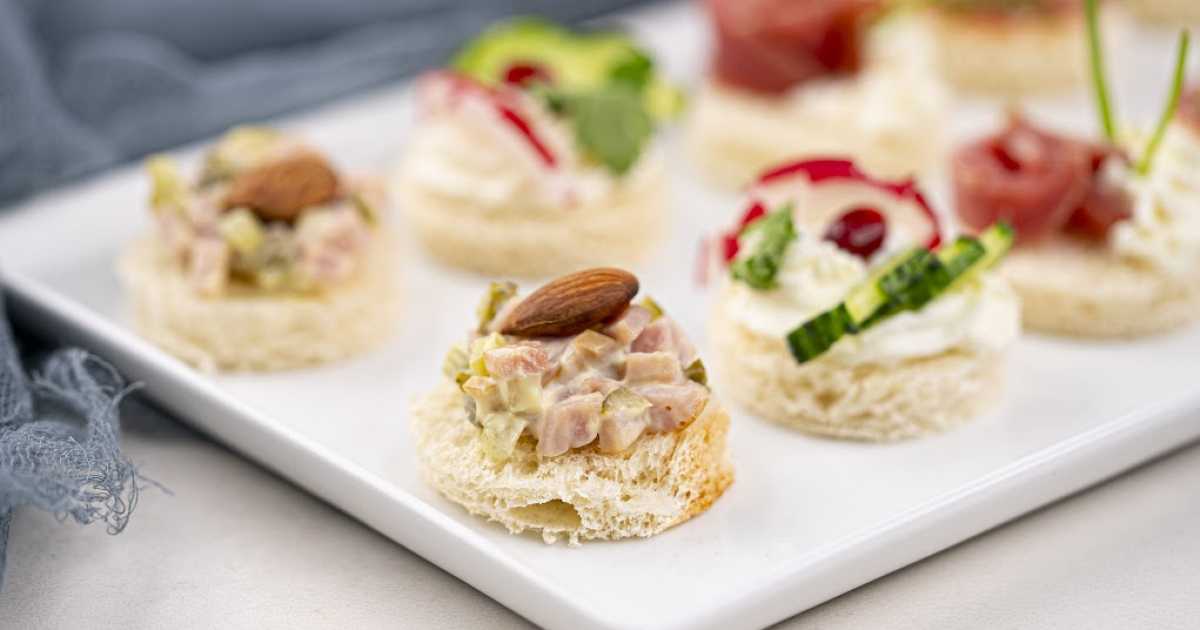 Хранение: При подготовке заранее храните хлебные кружочки и начинки отдельно. Собирайте канапе не ранее чем за 1–2 часа до подачи.