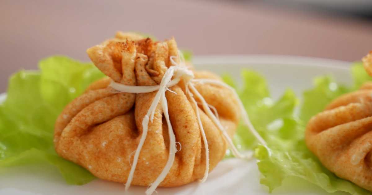 Завяжите и подавайте: Аккуратно завяжите верхушку блинчика сулугуни или зеленым луком.