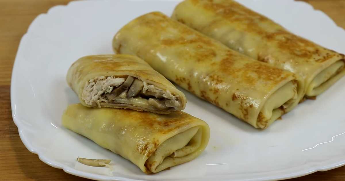 Блины с курицей и грибами — это современная интерпретация традиционных русских фаршированных блинов, которые издавна готовили с мясом, творогом или грибами. Сочетание нежной курятины и лесных (или шампиньонов) грибов пришло в домашнюю кухню в XX веке, когда эти продукты стали доступны повсеместно. Такие блины часто готовили на выходные или семейные торжества, заворачивая начинку в тонкие блинчики и подавали со сметаной или запекали под соусом. Сегодня это блюдо ценится за насыщенный вкус, сытность и возможность использовать остатки варёного мяса и грибов — оно одинаково уместно как в будни, так и на празднике.