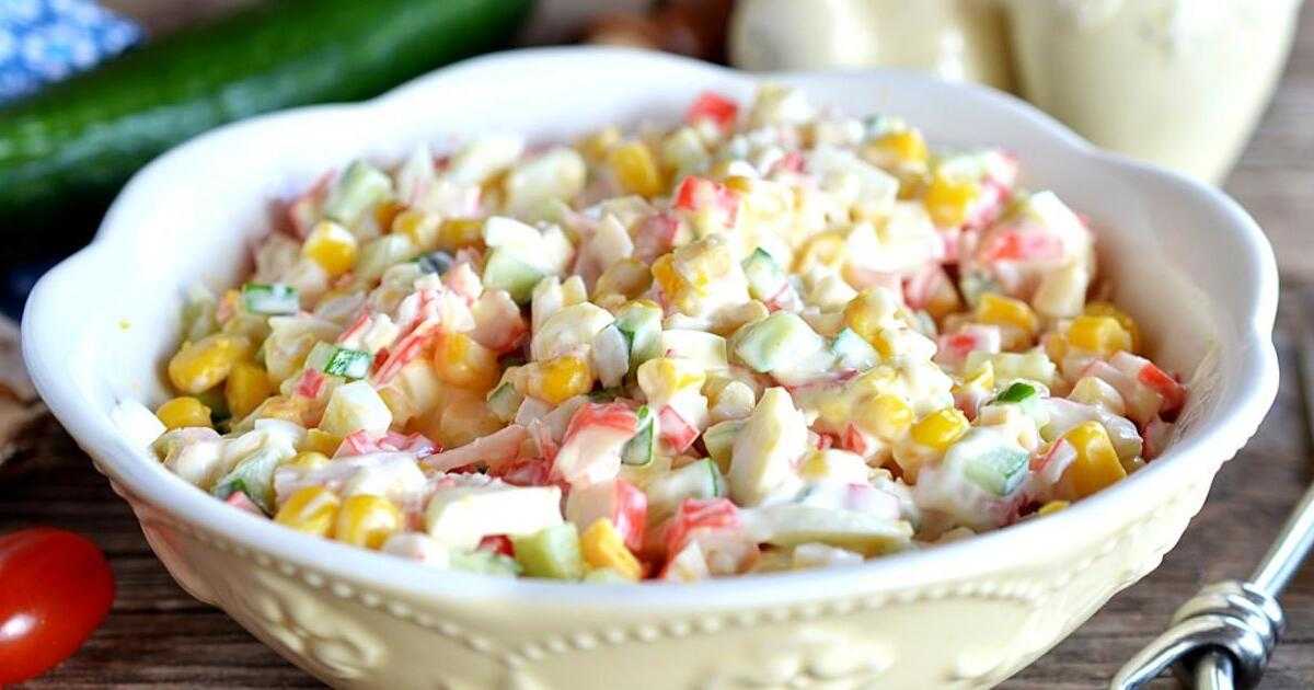 Хотим поделиться одним из очень вкусных и простых рецептов салатов, который подходит для быстрого ужина и украсит ваш праздничный стол. Конечно же, многие любят крабовые палочки. Этот салат с крабовыми палочками доказывает, что даже без яиц, риса и кукурузы можно приготовить настоящее кулинарное чудо. Если вы ищете, как приготовить крабовый салат без кукурузы – этот вариант на свежих огурцах и нежной заправке понравится вам своим легким и свежим вкусом. Начинаем готовить наш салат.