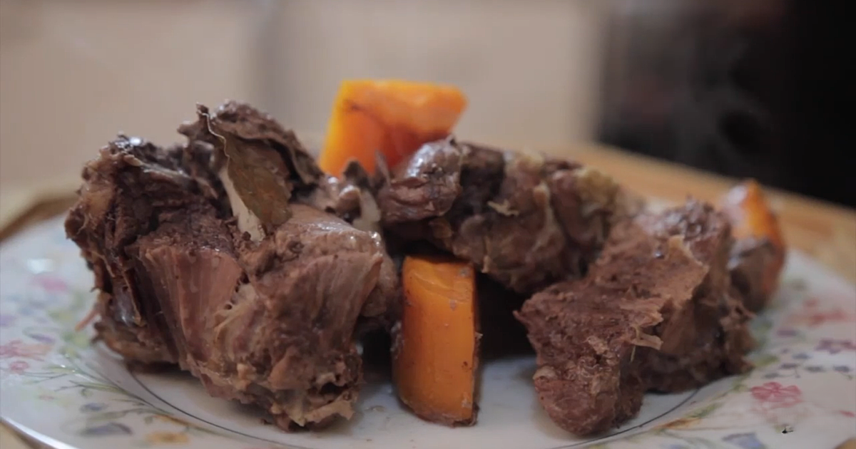 Подача: Традиционно это блюдо едят руками или используют нож и вилку, макая мясо в образовавшийся бульон.