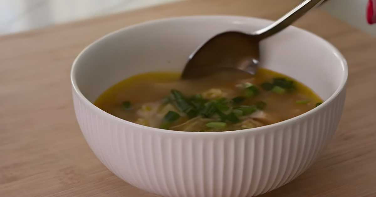 Постепенно влейте яичную смесь в кипящий суп, помешивая ложкой, чтобы образовались нежные хлопья.