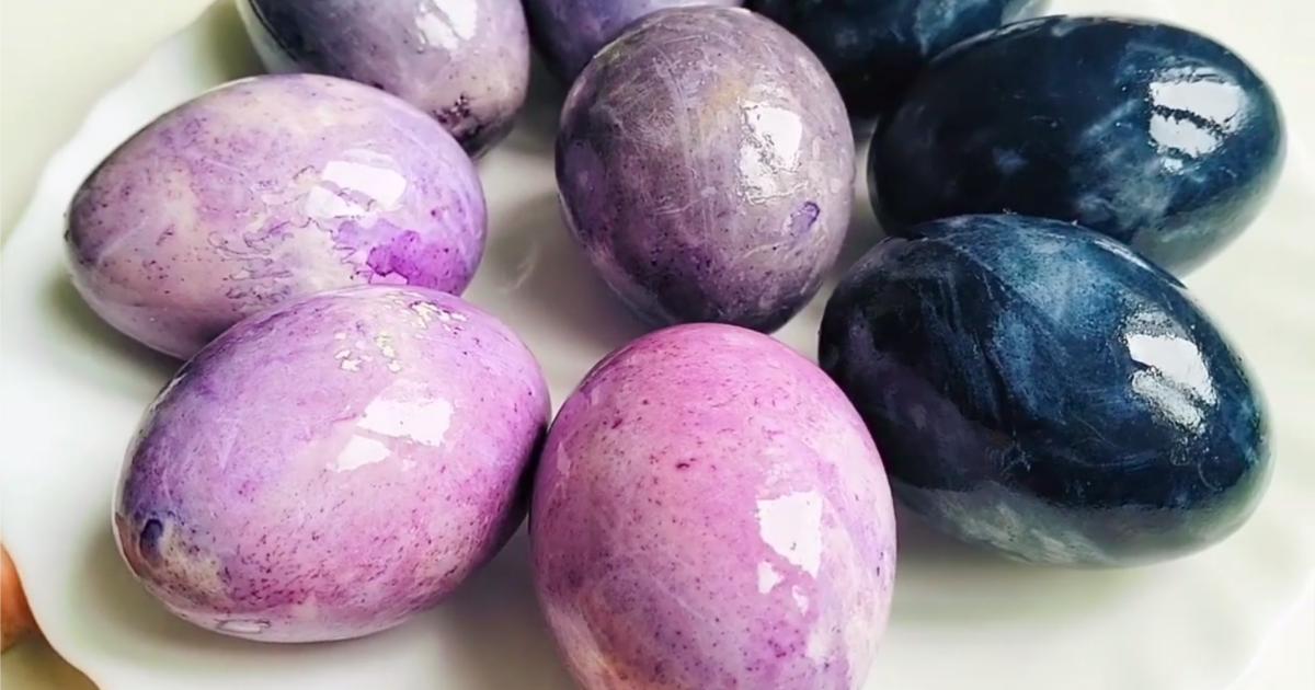 Оставьте часть яиц в остывающем отваре на 2 часа — они станут серо‑фиолетовыми.