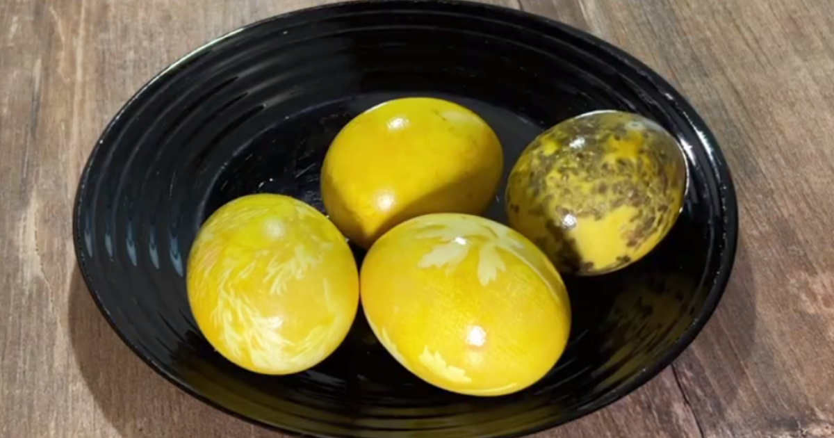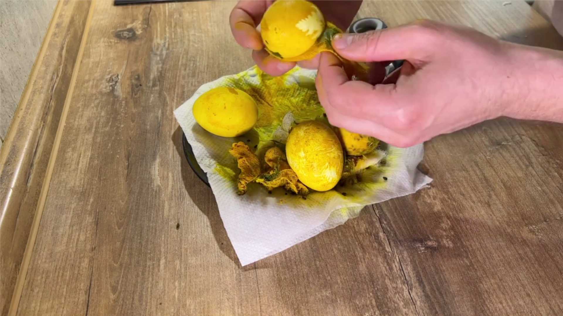 Для получения максимально ярких цветов используйте белую скорлупу; на коричневых яйцах желтый оттенок куркумы будет менее заметен.