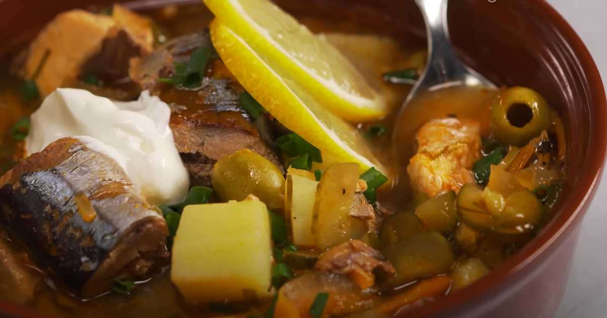 Секрет нашей рыбной солянки – в наваристом бульоне. В нашем пошаговом рецепте расскажем, как быстро приготовить суп, чтобы он получился ароматным и вкусным.