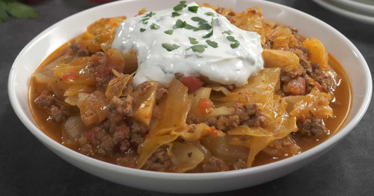 Произвольно нарежьте капусту и выложите на сковородку, к фаршу.