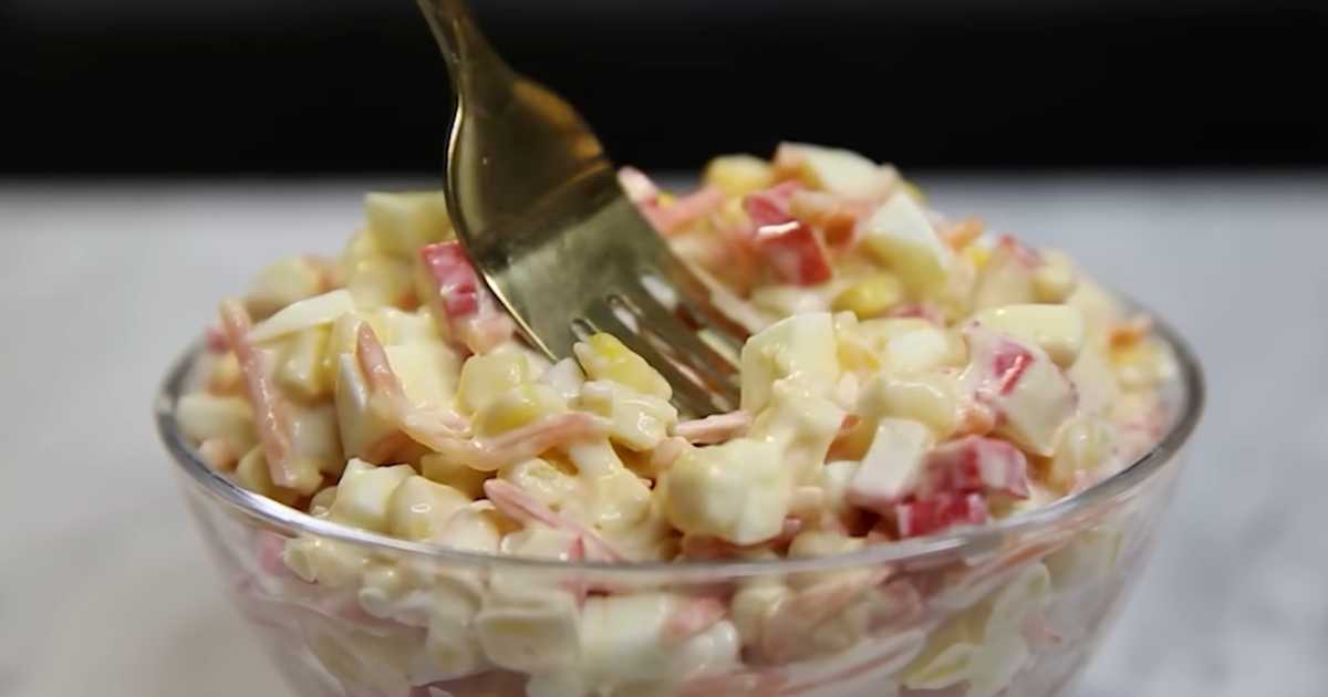 НА ЗАМЕТКУ: Если крабовые палочки нарезать мельче, салат классический без огурца получится с более нежной и однородной текстурой.