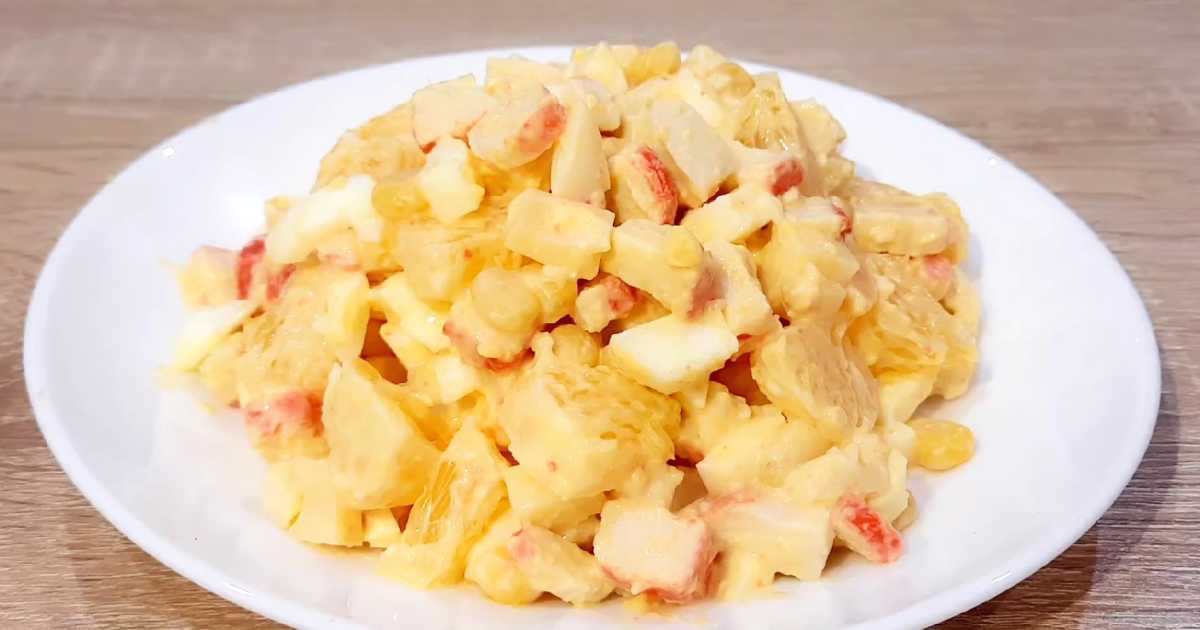 Этот рецепт — прекрасный пример современной кулинарии, где классические ингредиенты, такие как крабовые палочки и консервированная кукуруза, сочетаются с неожиданным цитрусовым акцентом. Такой салат стал популярным в постсоветском пространстве благодаря своей простоте и яркому вкусу. Сочетание сладкого апельсина, нежного сыра и морского привкуса крабовых палочек создает уникальное сочетание ингредиентов, которое покорит даже самых требовательных гурманов. Это идеальное блюдо для быстрого обеда или праздничного стола.