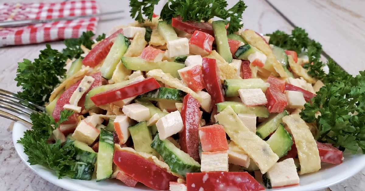 Этот крабовый салат с яичными блинчиками — отличный выбор для тех, кто хочет побаловать себя чем-то легким и сытным. Он сочетает в себе нежные крабовые палочки, хрустящие овощи и ароматные яичные блинчики. Такой рецепт идеально подходит для повседневного стола или как быстрый перекус. Это настоящий салат с крабовыми палочками, который полюбят даже те, кто обычно не ест морепродукты.