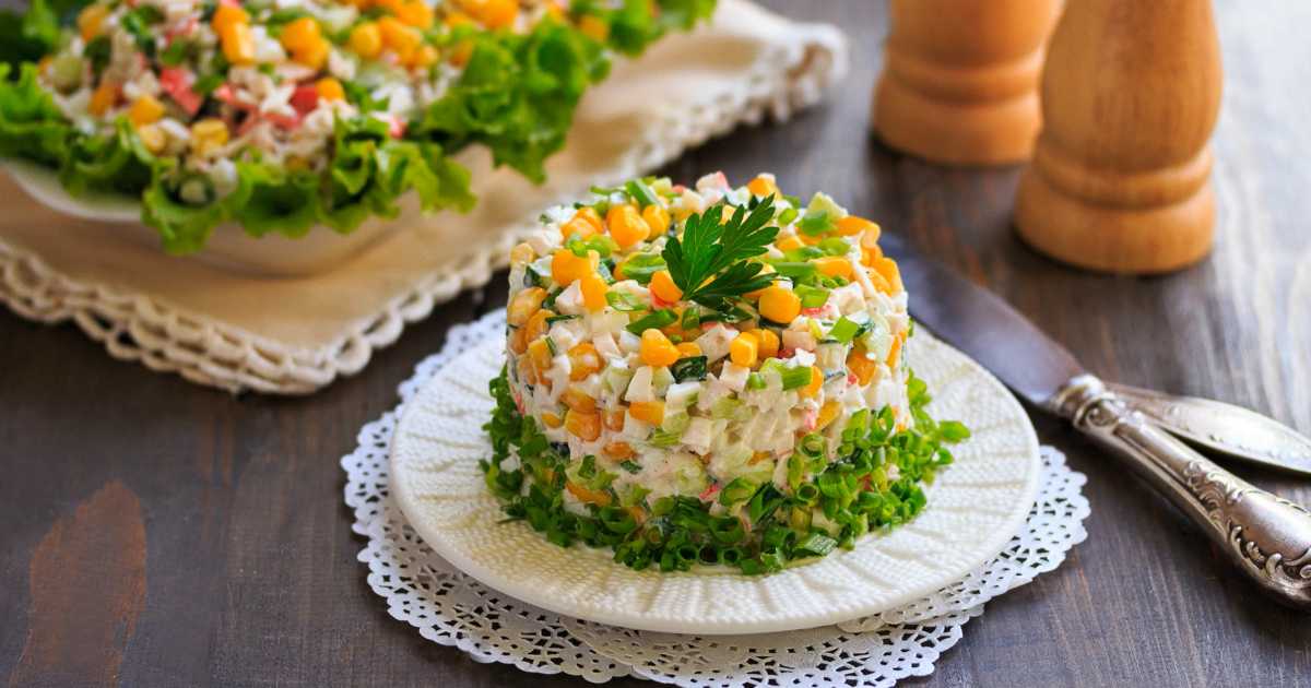Крабовый салат с кукурузой и огурцом