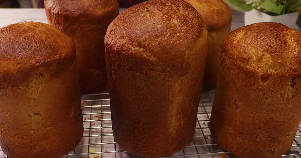Готовые куличи извлеките из форм, снимите бумагу и остудите на решетке. Ваш пасхальный кулич готов к подаче!