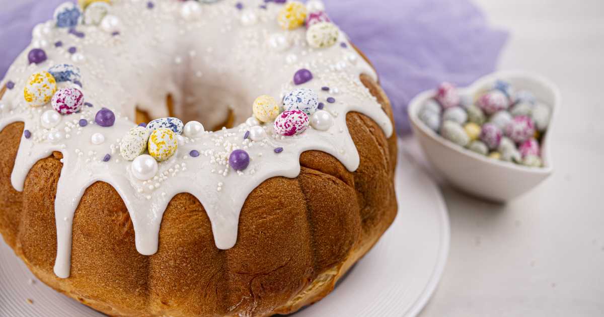 Этот рецепт представляет собой современную интерпретацию традиционного восточнославянского пасхального кулича. В отличие от классической цилиндрической формы, здесь используется кольцевая форма (форма для кекса с отверстием), что превращает выпечку в символический венок — знак вечности и возрождения. Начинка из изюма, грецких орехов и корицы добавляет праздничному хлебу текстуру и богатый аромат, делая его похожим на сладкую сдобную плетёнку.