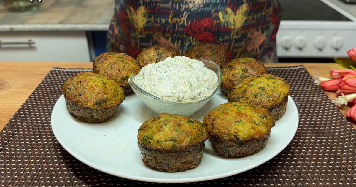 Выложите «маффины» из формы на блюдо и подавайте вместе с соусом.