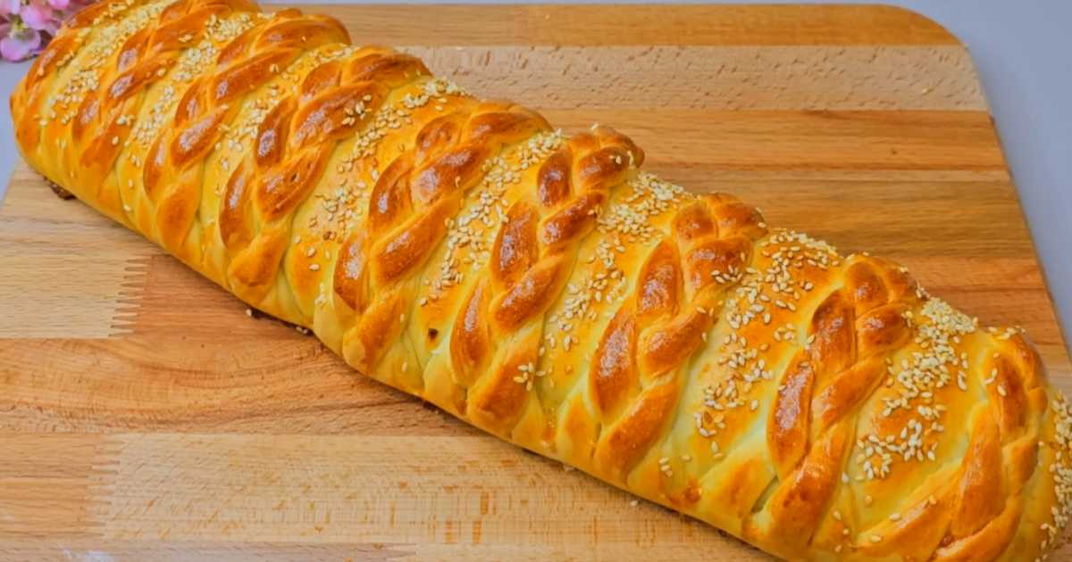 Посыпьте тесто мукой, расплющите и раскатайте в тонкий пласт прямоугольной формы.