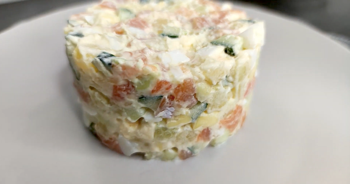 Этот рецепт — гениальное сочетание классики и современности. Вместо привычных ингредиентов, в этот салат добавляется нежная семга и кремовое авокадо, что придает блюду богатый вкус и роскошный вид. Это не просто салат, а настоящий шедевр, который украсит любой праздник.