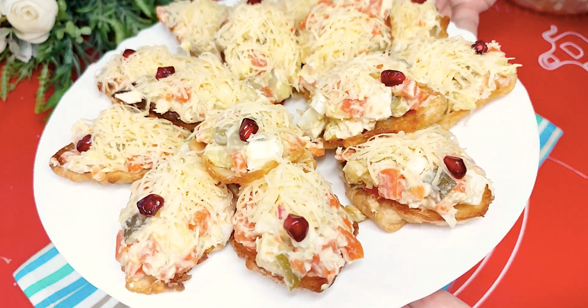 Этот рецепт — гениальное решение для тех, кто хочет подать классический салат в новом, изящном формате. Вместо большой салатницы, Оливье подается в хрустящих тарталетках, что делает его идеальной закуской для любого праздника или фуршета. Это не просто салат, а образец кулинарного мастерства, который украсит любой стол и порадует гостей.