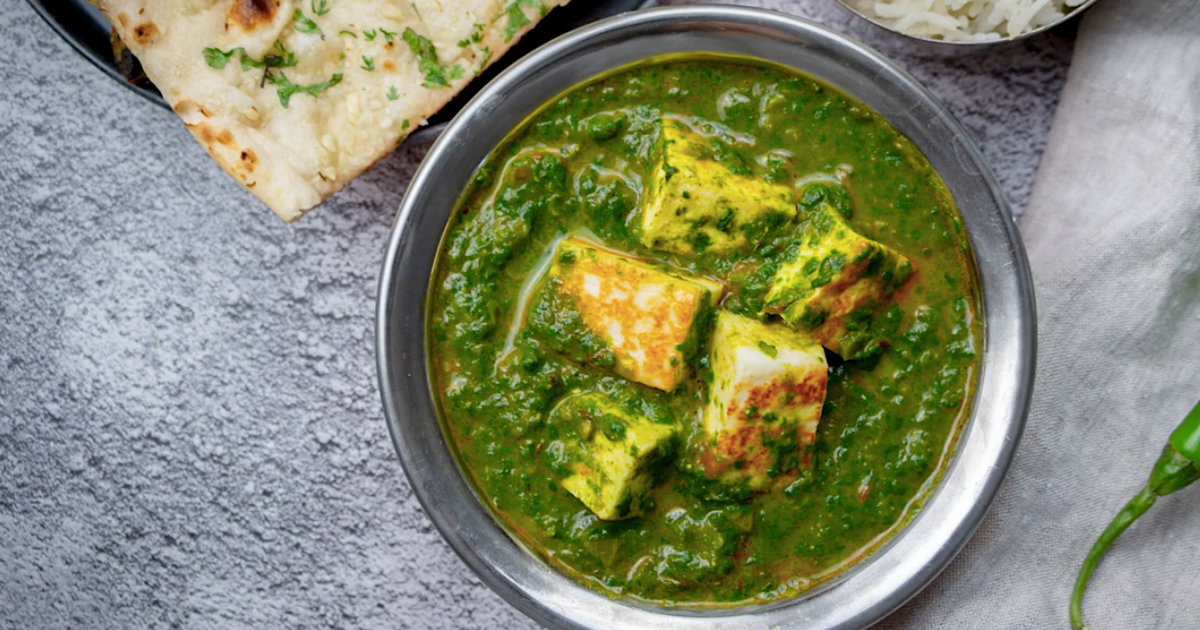 Палак панир – популярное индийское блюдо, главными ингредиентами в котором являются свежий шпинат и домашний сыр панир. Название так и переводится – панир со шпинатом. Этот мягкий сыр напоминает адыгейский, которым можно его заменять в подобных рецептах. Ну, а главная «фишка», как обычно в индийской кухне, в наборе ароматны и острых специй.
