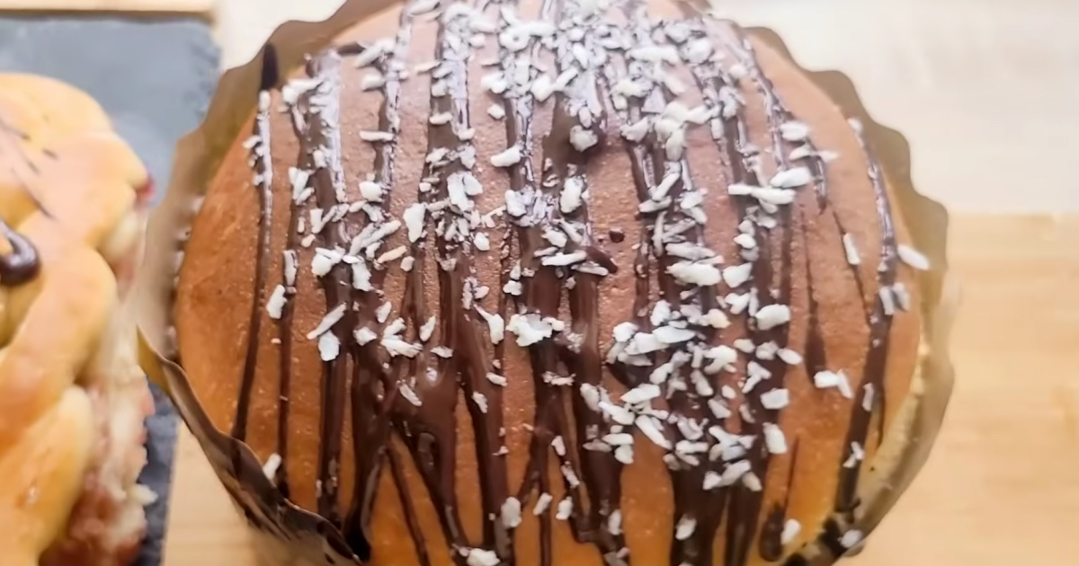 Украшение. Остывший кулич украсьте растопленным диабетическим шоколадом (нанесите полоски) и посыпьте кокосовой стружкой. Плетенку также можно полить шоколадом.