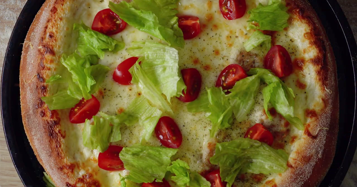 Не кладите салат и помидоры до выпечки — они дадут сок и сделают основу влажной. Добавляйте их только после того, как пиццу вынули из духовки.