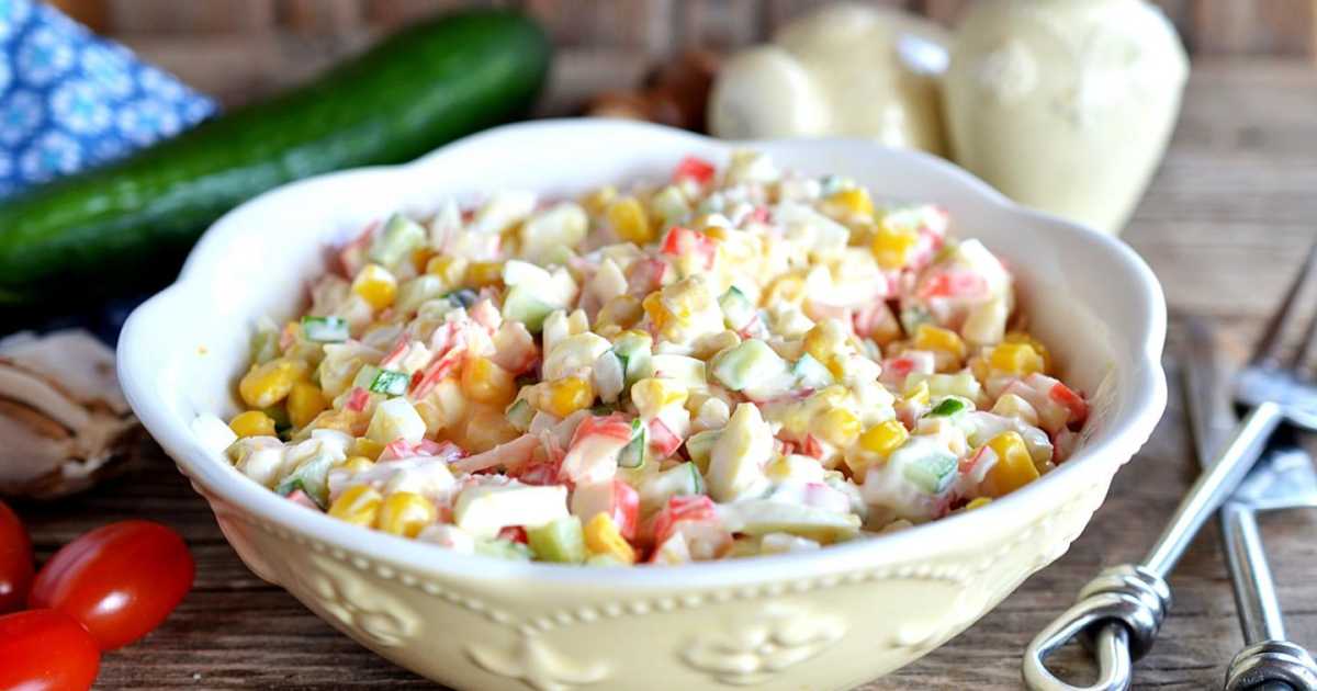 Перед готовкой проверьте крабовые палочки и кукурузу – они должны быть свежими и качественными. Перед подачей дайте салату настояться в холодильнике 15-20 минут.