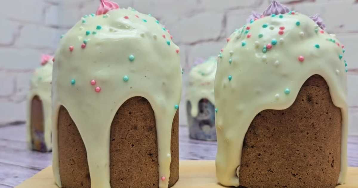 Остывшие ПП куличи покройте загустевшей глазурью и украсьте кондитерской посыпкой или меренгой.