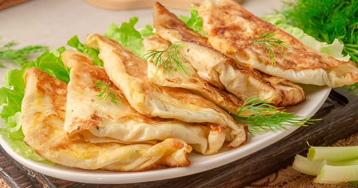 Разрежьте каждую лепешку на четыре треугольника. На край каждого треугольника выложите немного начинки и аккуратно заверните, формируя пирожки.