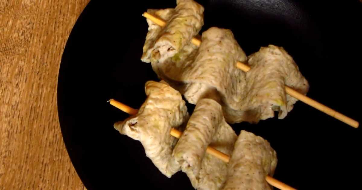 Нарежьте получившийся пласт на полоски, сложите гармошкой и наткните на шпажки.