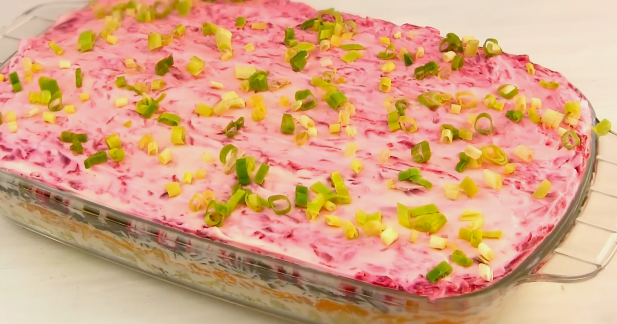 Этот салат — отличная альтернатива традиционной "селедке под шубой". Вместо рыбы используется морская капуста, что делает блюдо вегетарианским и не менее вкусным. Это идеальный выбор для тех, кто придерживается постного питания или просто хочет попробовать новую интерпретацию любимого блюда. Такой вариант прекрасно подойдет для праздничного стола.