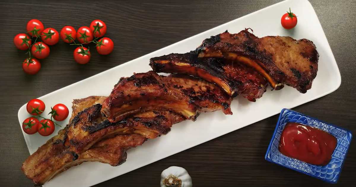 Возьмите корейку и ножом отделите ребра друг от друга, оставив их соединенными основной частью мяса.