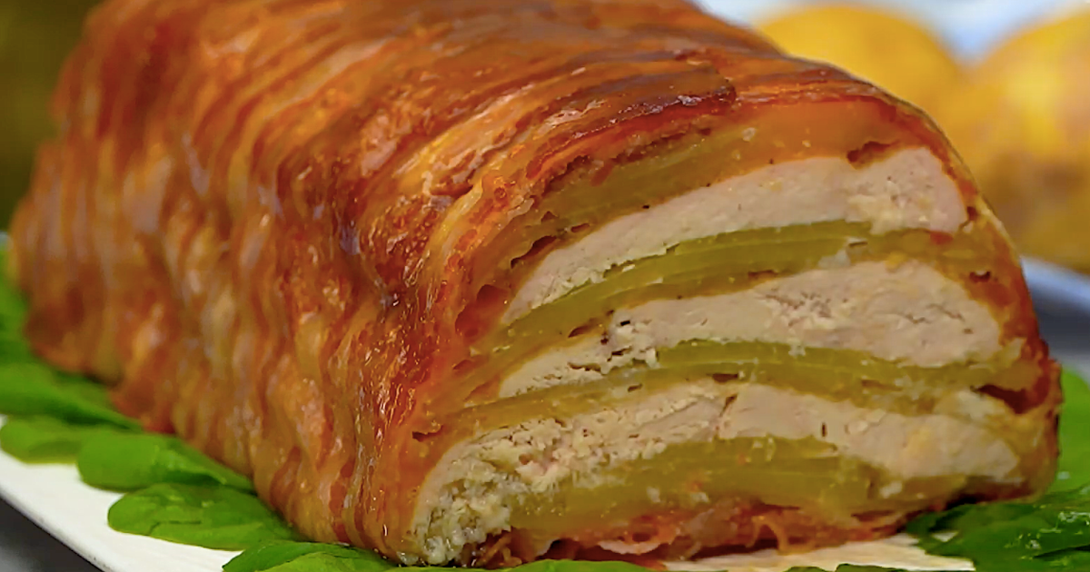 Террин — классическое блюдо французской кухни, получившее название от специальной формы для запекания (terrine). Суть техники — в многослойной укладке ингредиентов с последующим запеканием. В этом рецепте чередуются нежные пласты куриного филе, тонкие ломтики картофеля и расплавленный сыр, а завершает композицию ароматная оболочка из бекона. Такой террин станет достойным украшением как праздничного застолья, так и семейного обеда.