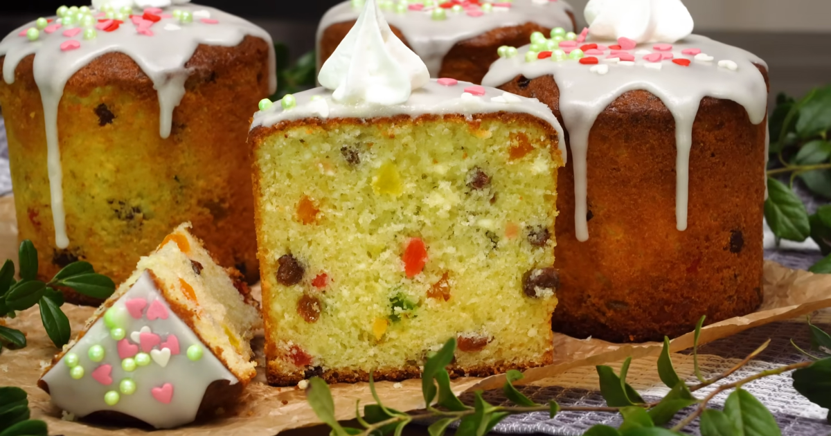 Полейте остывшие куличи белой глазурью, позволяя ей красиво стекать по краям.