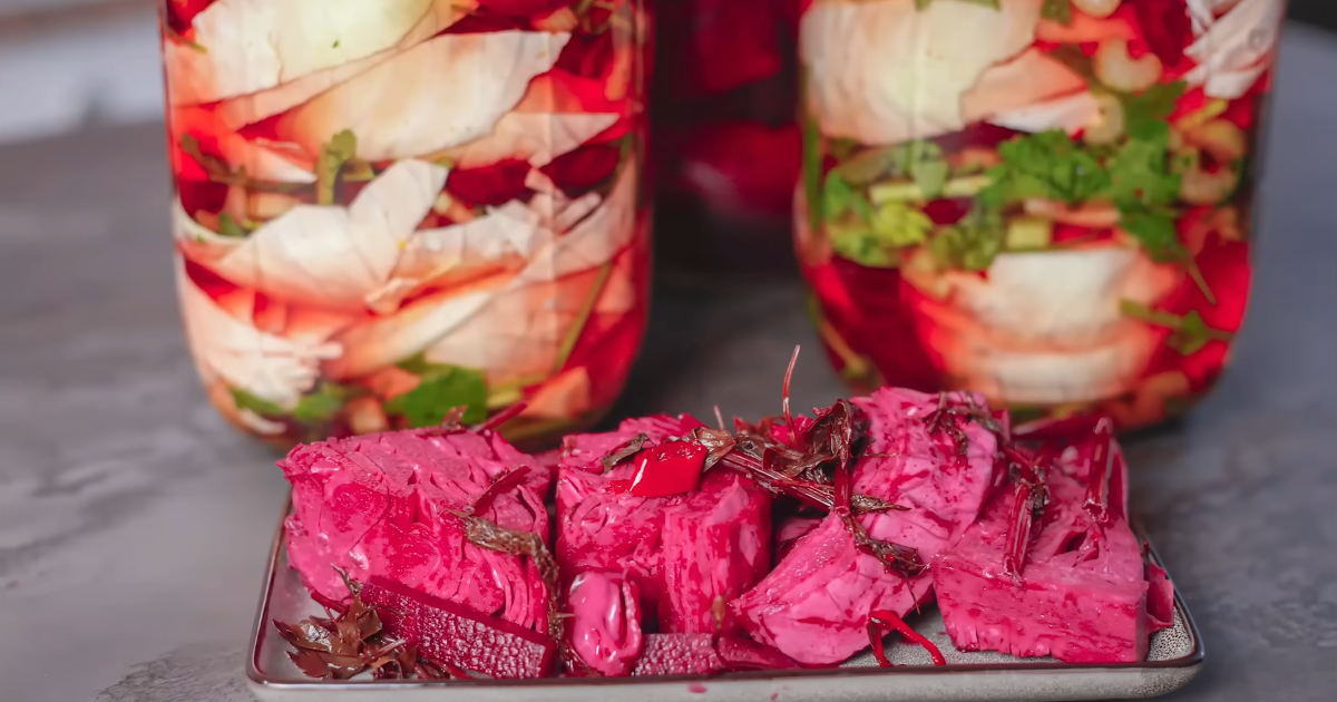 Хрустящая маринованная капуста со свеклой и сельдереем