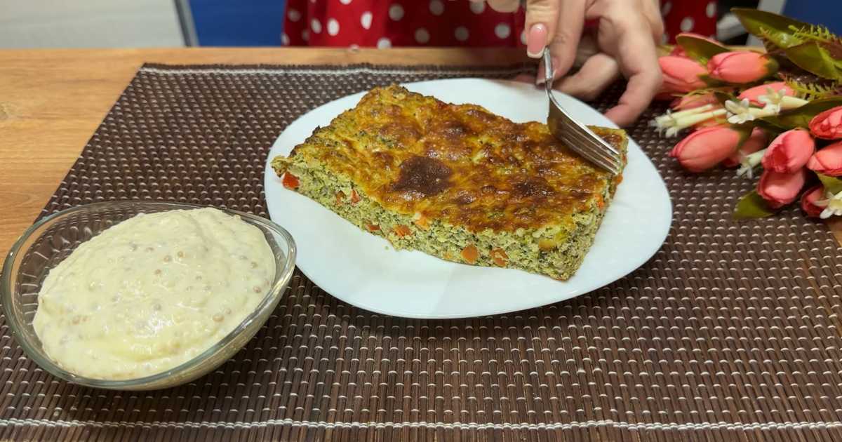 Разрежьте запеканку на порции и подавайте вместе с соусом.